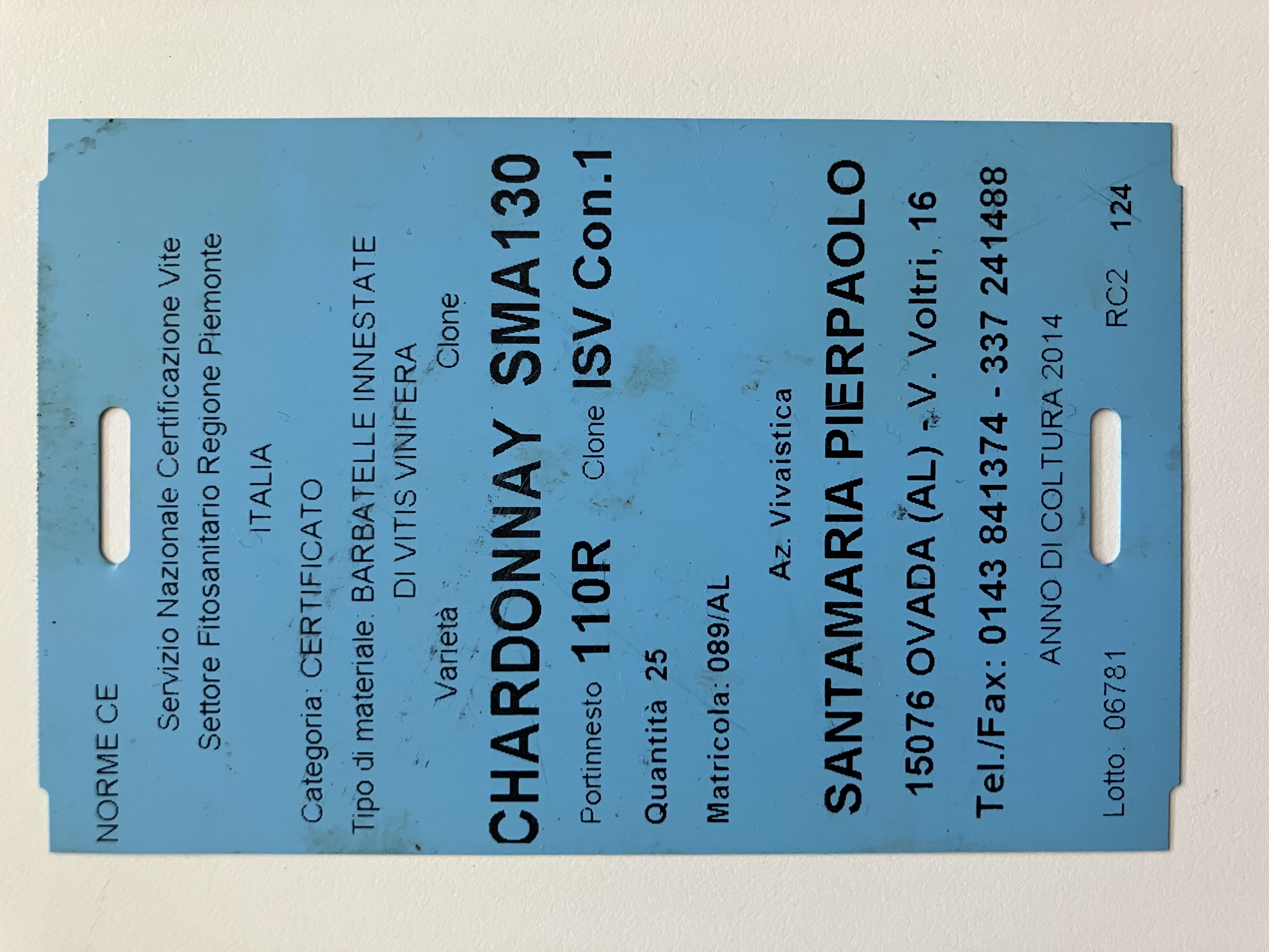 aanplant van 300 stokken chardonnay piemonte (type SMA 130) in 2015 op een helling van löss in Koningsbosch